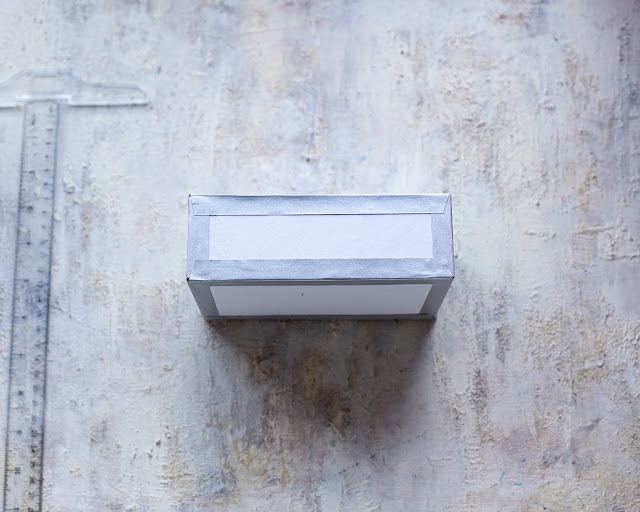 5) Only then we can finish gluing the insides of the box. We will create the same silver cardstock stripes to bind the outside of the box and lid